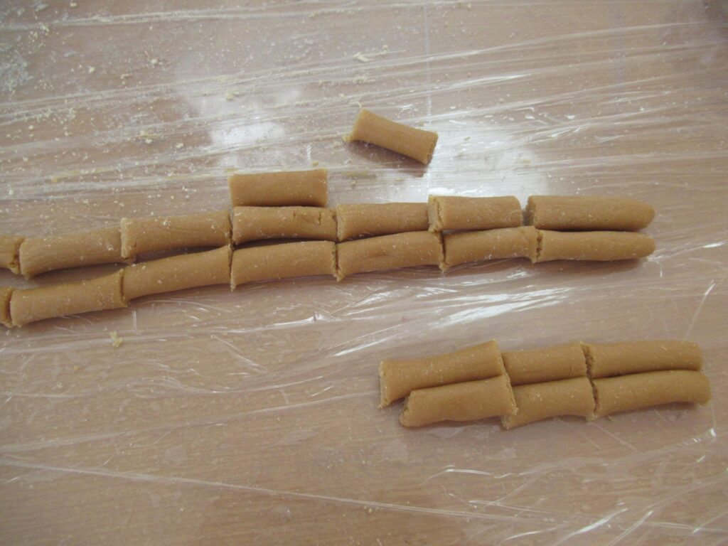粉からこねて、棒状に伸ばして、カットして、ねじって、きな粉をまぶして美味しく出来ました( ´∀` )