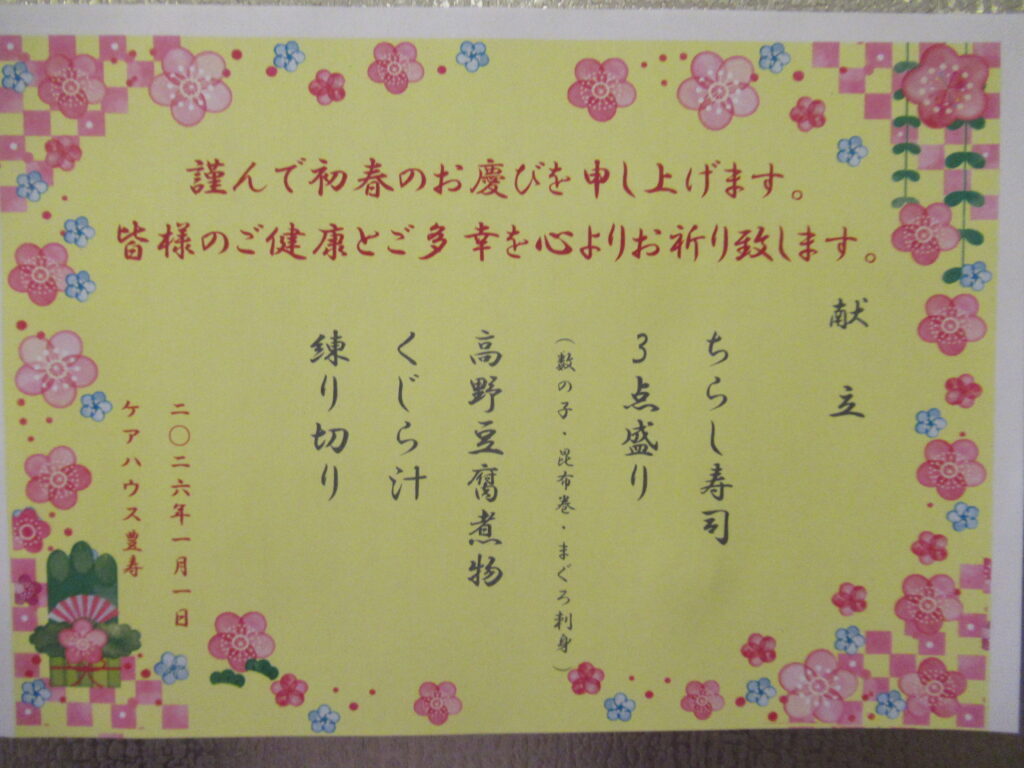 大好評だった年越し会のメニューです。