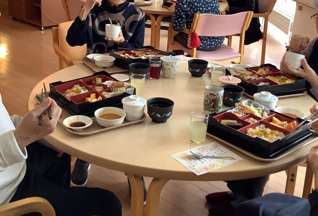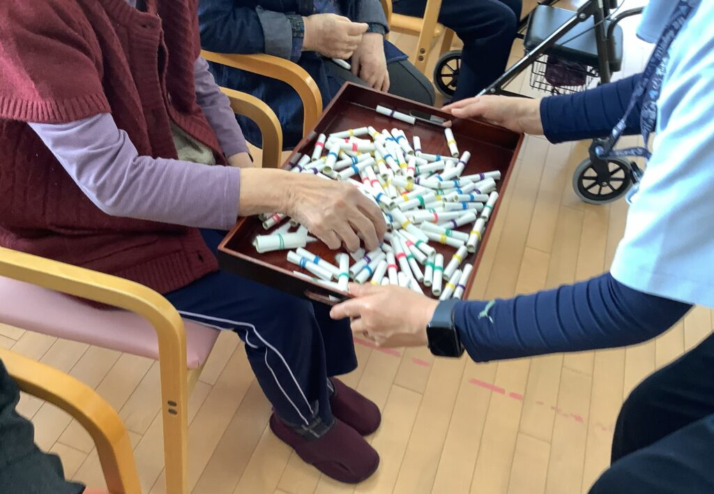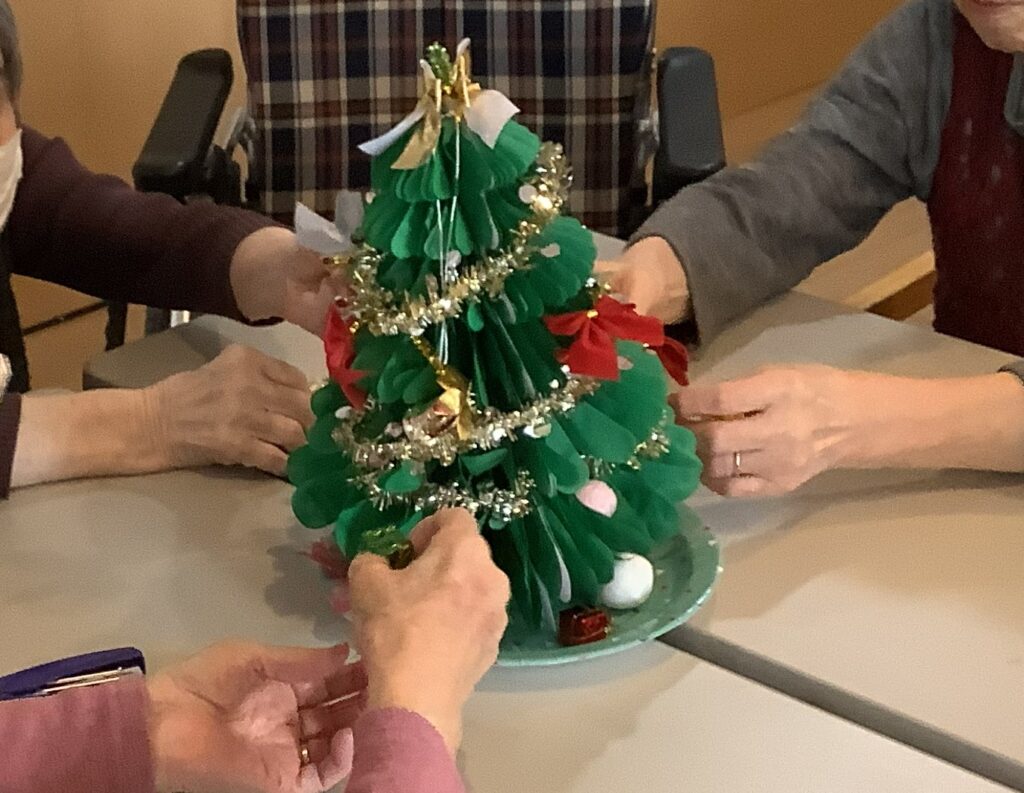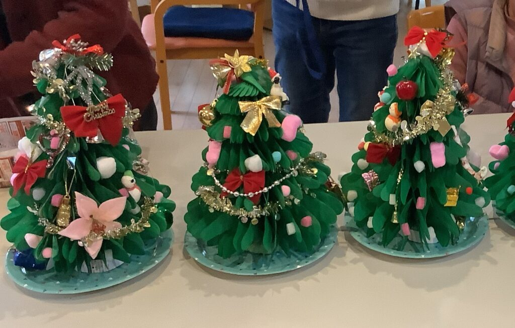 ・クリスマスツリーを作りました。各テーブルに飾って食事の時に楽しんでました。