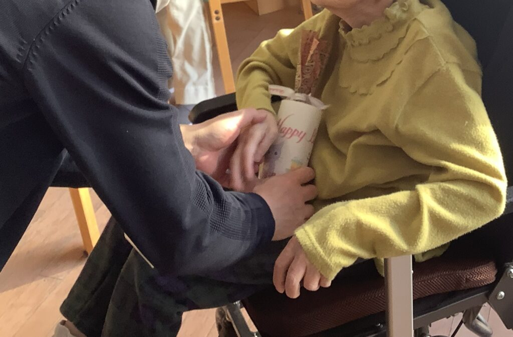 ・1月、お誕生日おめでとうございます。プレゼントをもらってにこにこ😊でした。