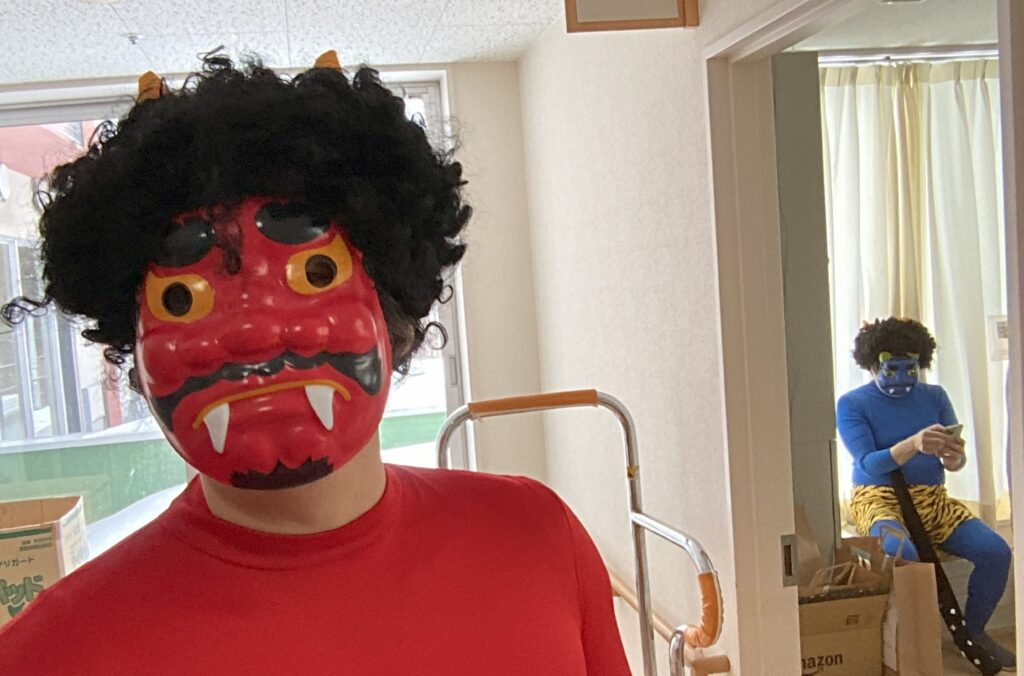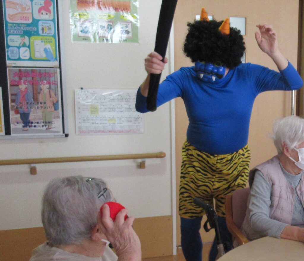 この後、入居者様に玉をぶつけられ鬼たちは逃げて行きましたとさ。めでたしめでたし。