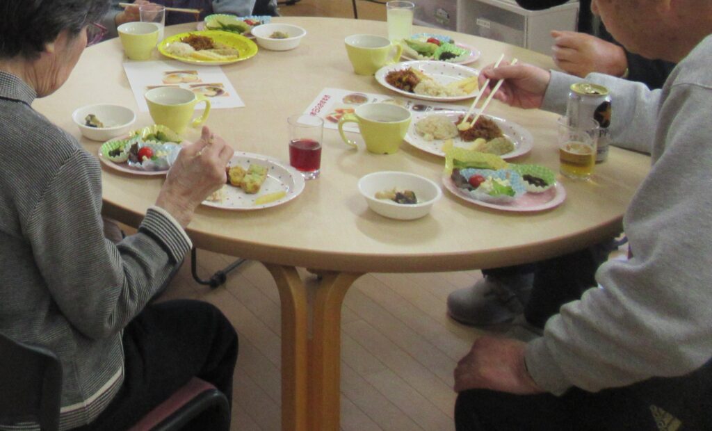 ビールにソフトドリンク、美味しい料理と職員も盛り付けに大忙し。