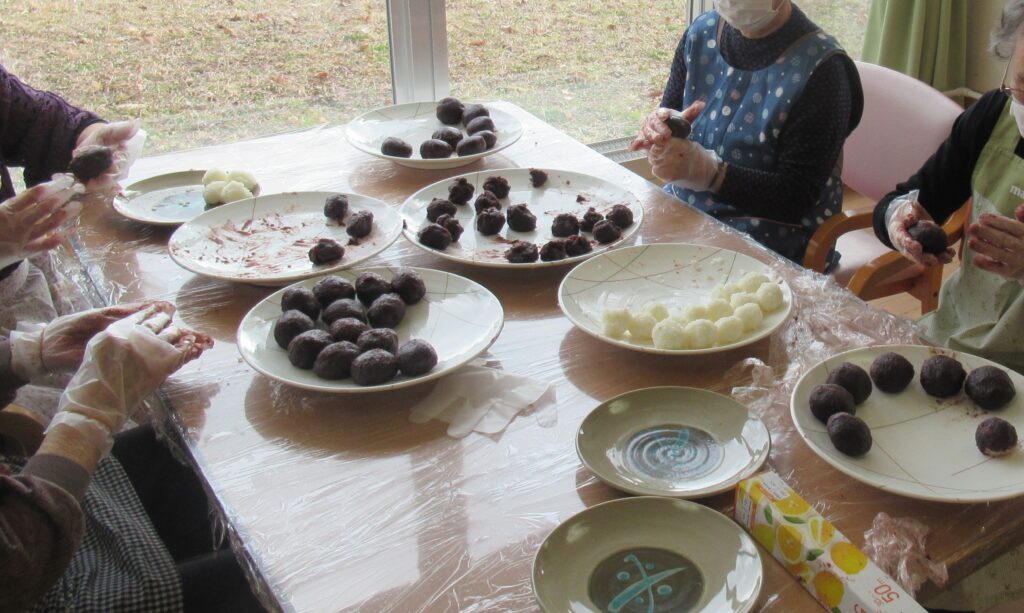 甘いおはぎのできあがりです。皆さんで美味しくいただきました。