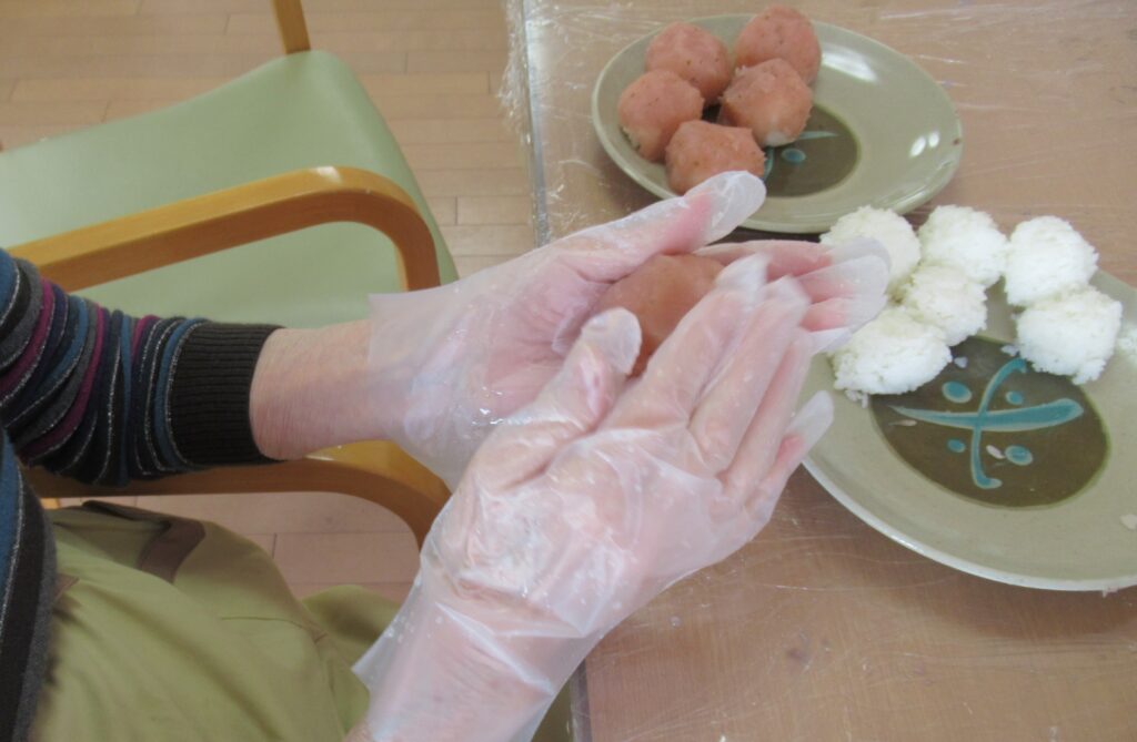 ご飯を丸めて、あんこで包む。お上手ですね。