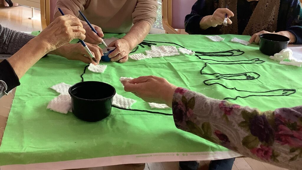 運動だけではありません。壁画作りにも挑戦してます。仕上がりが楽しみですね。